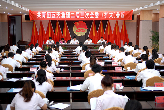 6月1日,集团公司团委召开二届三次全委 (扩大) 会议,会议邀请了团市委副书记尹永彪,市直团工委书记刘旭旭出席,集团公司党委副书记、工会主席张新义,集团公司党委委员、监事会主席郑延海,集团公司办公室主任、机关支部书记、团委书记杨帆出席会议。共青团蓝天集团二届委员会委员、团员代表共计七十余人参加会议。