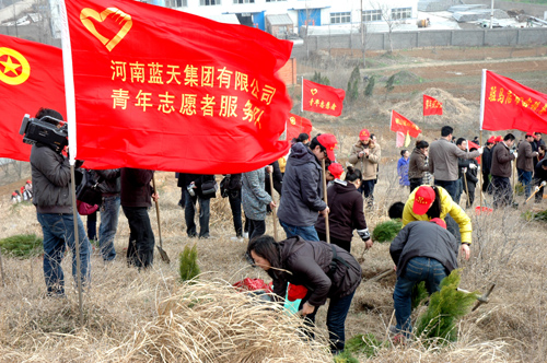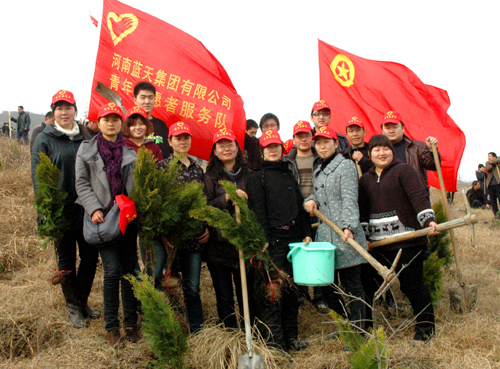 草长莺飞,春回大地。在3月12日植树节到来之际,蓝天集团团委响应团市委的号召,组织集团公司团员青年15人到确山县三里河乡贯山参加了全民义务植树活动。播种一片绿荫,收获满眼春色。始于1979年的全民义务造“绿”运动已在我们的行动中走过了30个春天。如果要以一种独特的形象代表地球的活力,用一种单纯的象征作为生命概念,那就是树,进入树的世界就像进入美与神秘的境地。绿化造林就是改善我们的生态状况,就是美化我们的家园,其巨大作用和深远意义不言而喻。