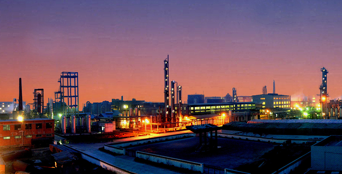 公司整体并购遂平县化工厂。图为改建后的化工厂夜景。