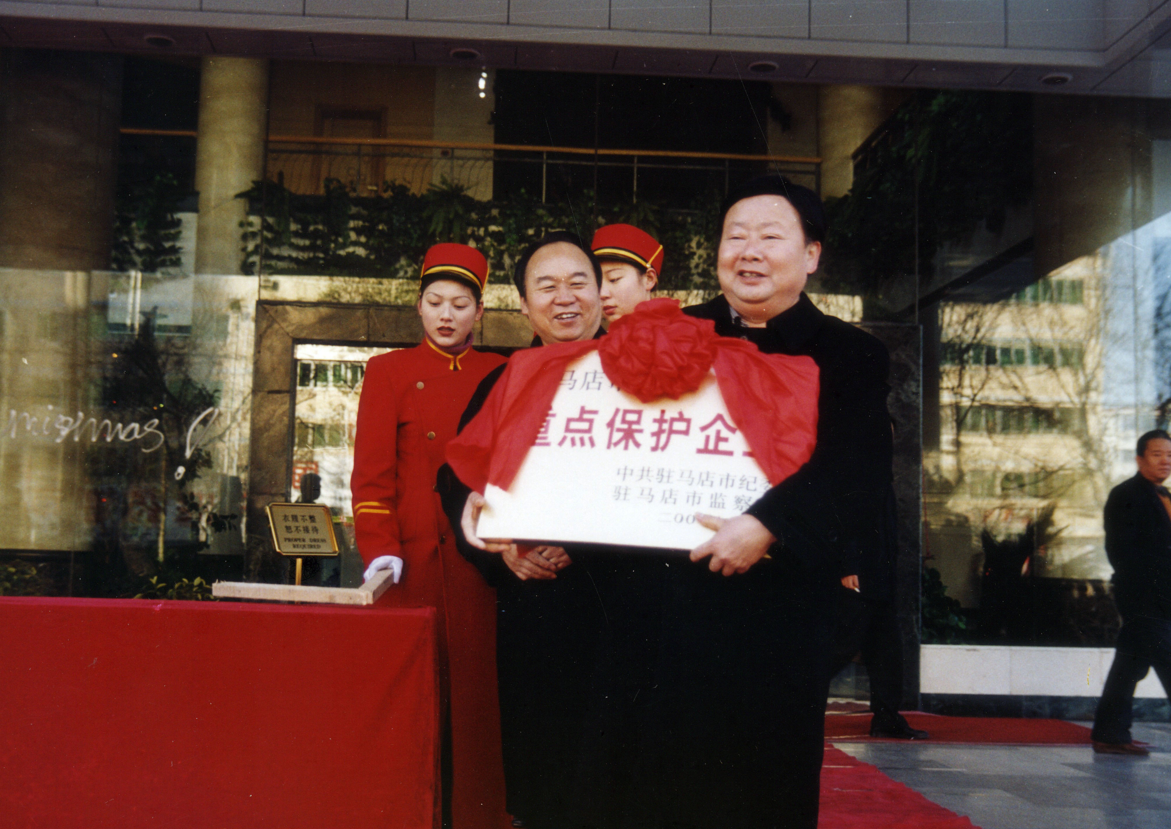 市政府授予公司“市重点保护企业”称号。图为授牌现场。