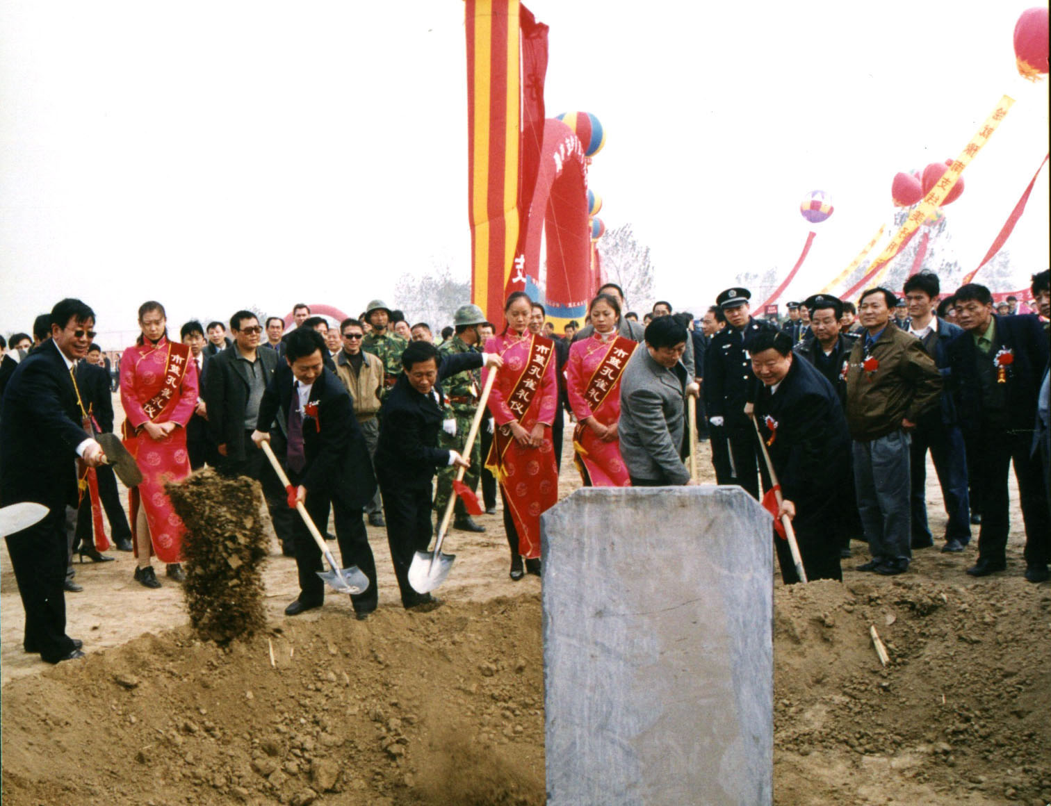 公司承建的国家“十五”重点工程项目、连接全国南北的大动脉—阿深高速公路新县段开工建设,该项目开创了我省民营企业投资建设高速公路的历史先河。图为高速公路项目开工仪式现场。