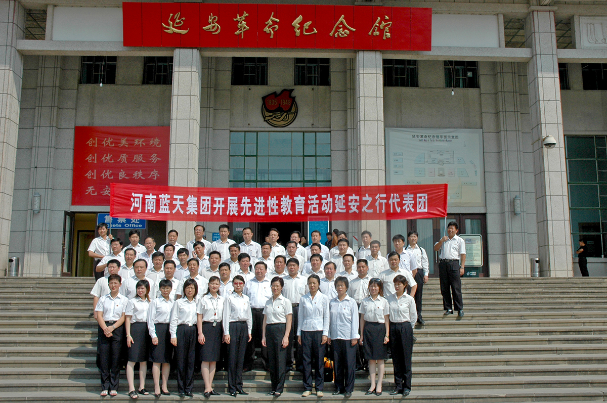 在纪念中国人民抗日战争暨世界反法西斯战争胜利60周年之际,集团公司党委组织党员干部代表举行革命传统教育延安行活动。图为活动人员在延安革命纪念馆前合影留念。