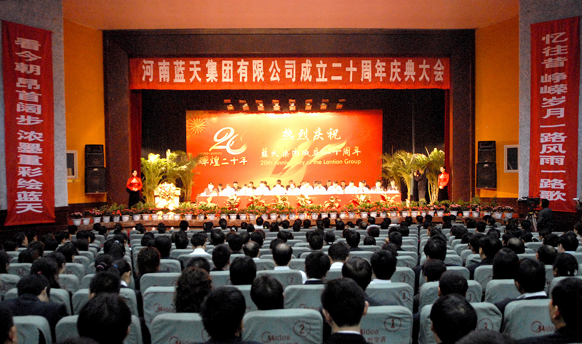 9月26日上午,伴着绵绵的细雨,蓝天集团20周年的庆典大会在风光影剧院隆重举行,近1000名蓝天员工欢聚一堂,共同回顾蓝天集团20年来取得的辉煌成就,憧憬蓝天集团光明灿烂的锦绣前程。图为庆典大会现场。