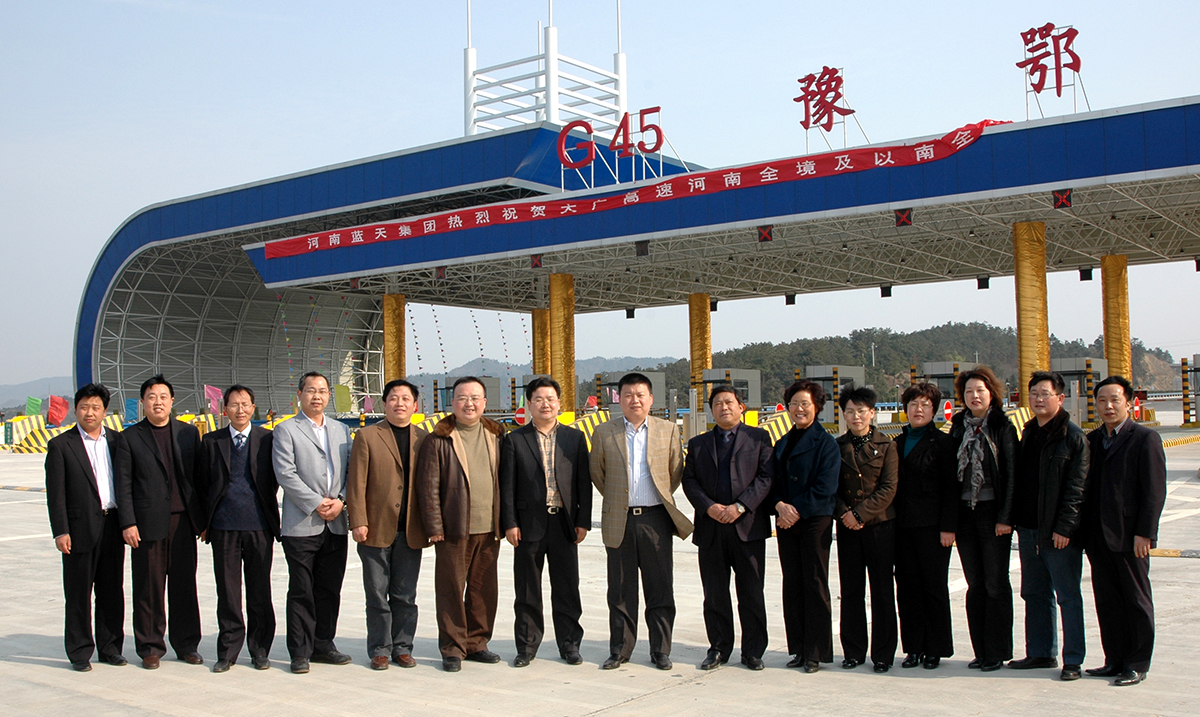大广高速平舆至新县段建成通车,并顺利通过竣工验收,标志着大广高速河南段全线建成通车,有效缓解了京港澳高速、107国道干道的交通压力。图为集团领导合影留念。