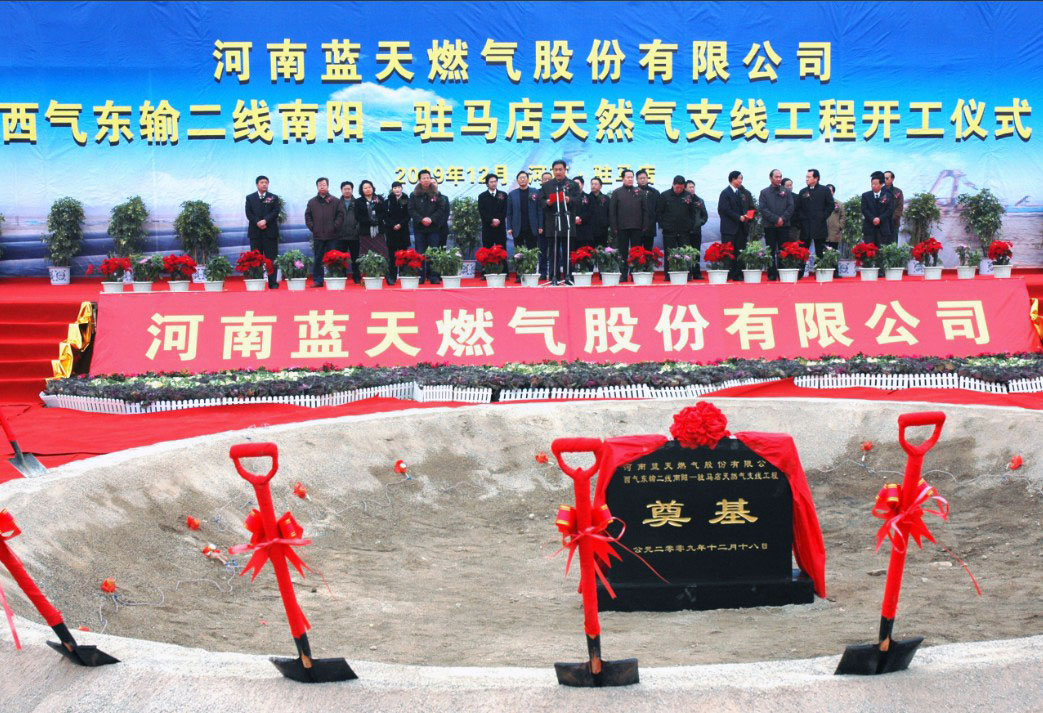 全长130公里、年最大输气规模16亿立方米的西气东输二线南阳至驻马店支线开工建设。图为开工奠基仪式现场。