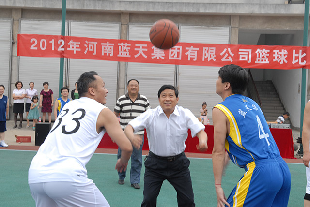 6月1日-3日,2012年蓝天集团篮球比赛在中油销售公司篮球场举行,集团公司党委副书记、工会主席张新义出席活动并致辞。集团公司常务副总经理扶廷明、监事会主席郑延海,总经理助理王继光、李建,团委书记杨帆及系统各单位、参股公司近100名干部员工代表参加了此次活动。比赛历经3天、6场激烈角逐,最终,集团公司联队和燃气公司联队分获冠亚军,蓝天茶业联队位居第三,中油公司联队获得本次比赛的优秀组织奖。
