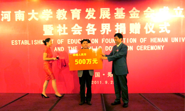 9月23日,河南大学教育发展基金会成立揭牌仪式在郑州举行,集团公司党委副书记、监事会主席张新义出席活动并代表蓝天集团向基金会捐款500万元,李新华董事长同时被聘为基金会名誉理事。